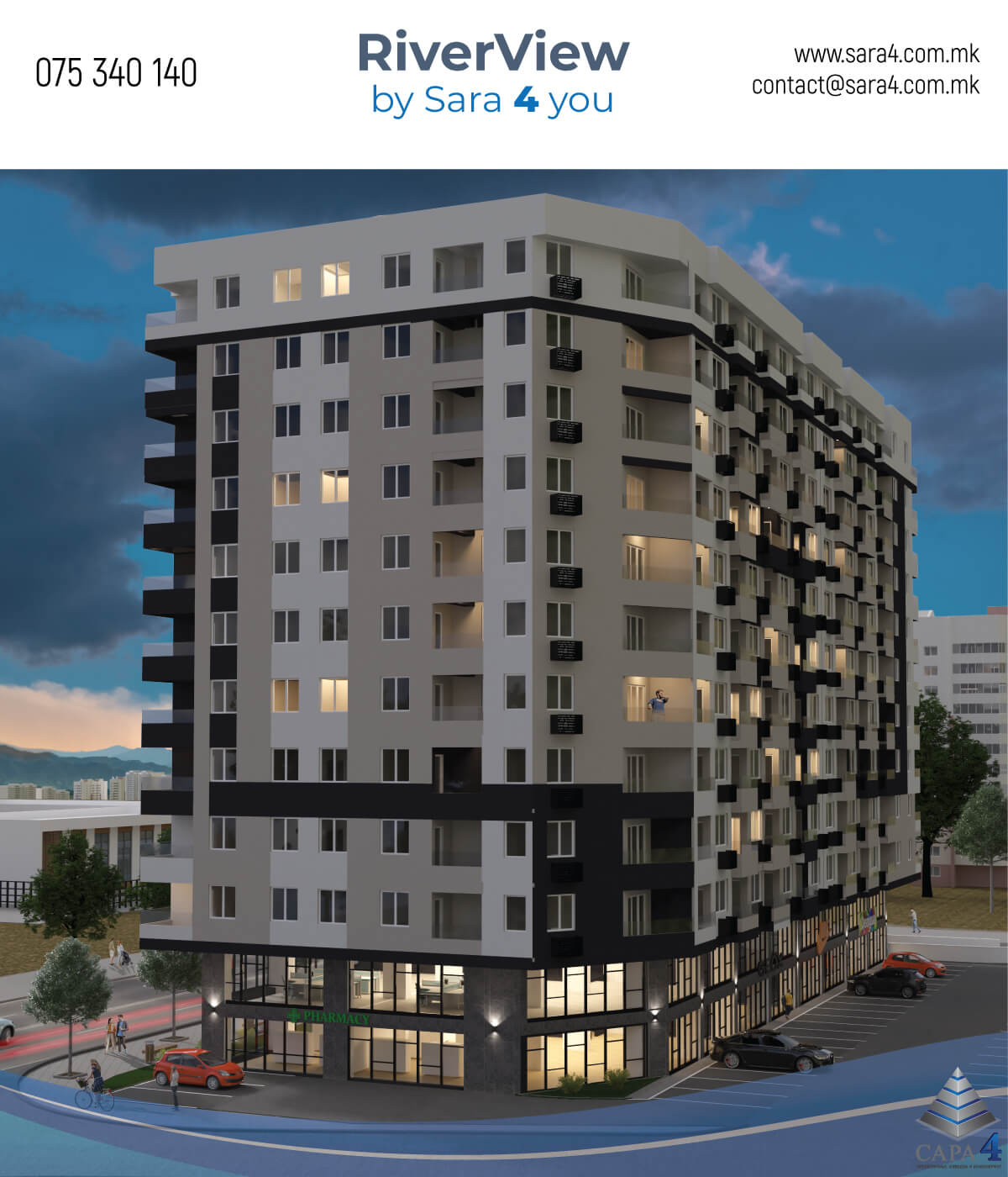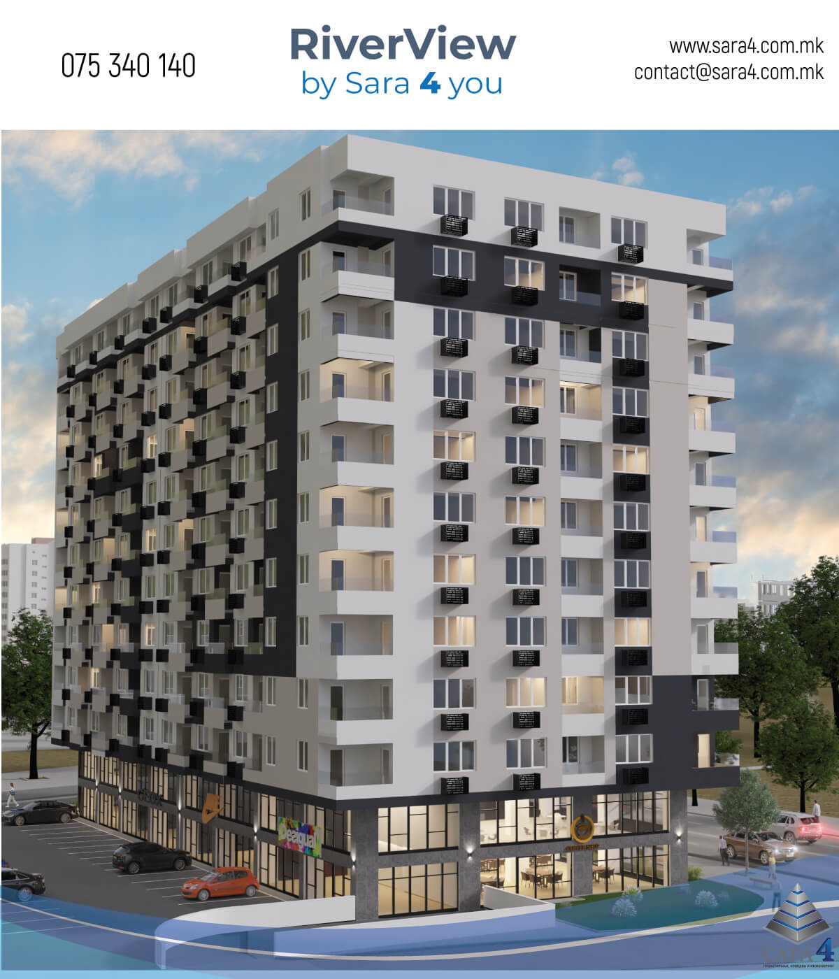 Современ енергетски ефикасен објект од приземје, девет ката и поткровје, решен како две ламели со посебни влезови (секој влез има по два лифта), во приземјето има деловен простор, а паркирањето е решено во две нивоа под објектот. Секој просторен метар е внимателно проектиран и исто толку внимателно изведен.
